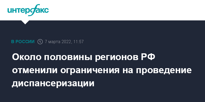 Около половины регионов РФ отменили ограничения на проведение диспансеризации