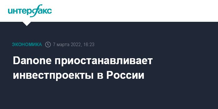 Москва. 7 марта. INTERFAX.RU - Французская Danone, один из крупнейших производителей молочной продукции, принял решение приостановить все инвестпроекты в РФ.