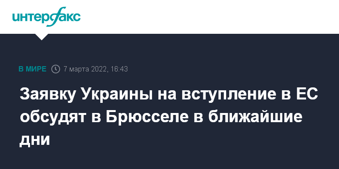Москва. 7 марта. INTERFAX.RU - В Евросоюзе в ближайшие дни проведут обсуждение заявки Украины на вступление в ЕС, заявил в понедельник глава Евросовета Шарль Мишель.