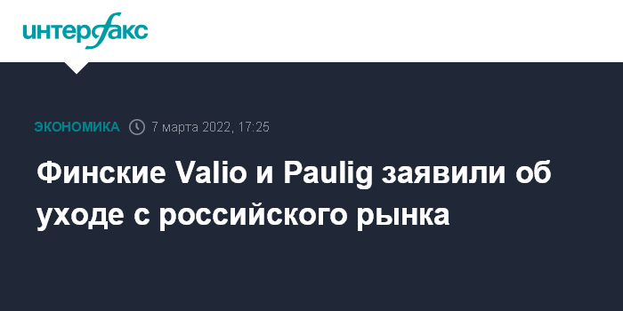 Москва. 7 марта. INTERFAX.RU - Финские молочный концерн Valio и производитель кофе и продуктов питания Paulig объявили об уходе с российского рынка.