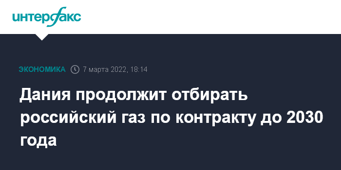 Дания продолжит отбирать российский газ по контракту до 2030 года