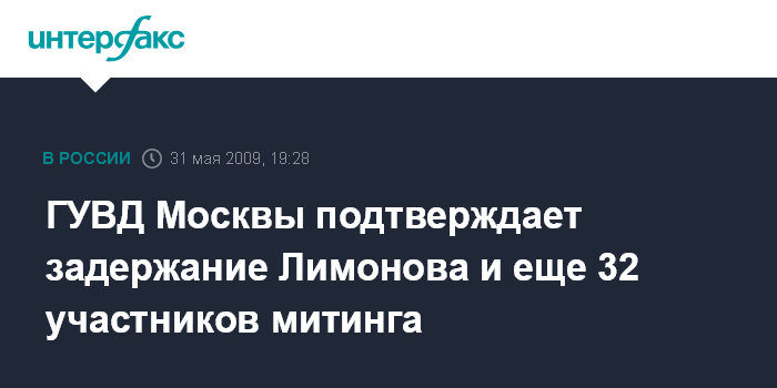 ГУВД Москвы подтверждает задержание Лимонова и еще 32 участников митинга