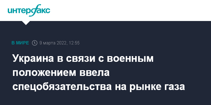 Москва. 9 марта. INTERFAX.RU - Кабинет министров Украины с 1 марта 2022 года ввел в действие постановление о возложении специальных обязательств для обеспечения общественных интересов на рынке природного газа, сообщает министерство энергетики.