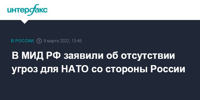 В МИД РФ заявили об отсутствии угроз для НАТО со стороны России