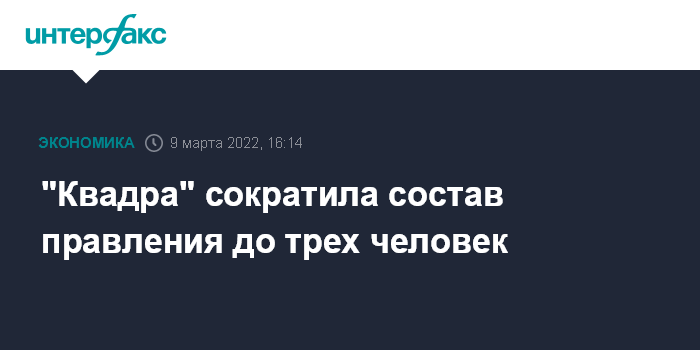 Москва. 9 марта. INTERFAX.RU - Совет директоров ПАО "Квадра" сократил численный состав правления с шести до трех человек, говорится в сообщении компании.