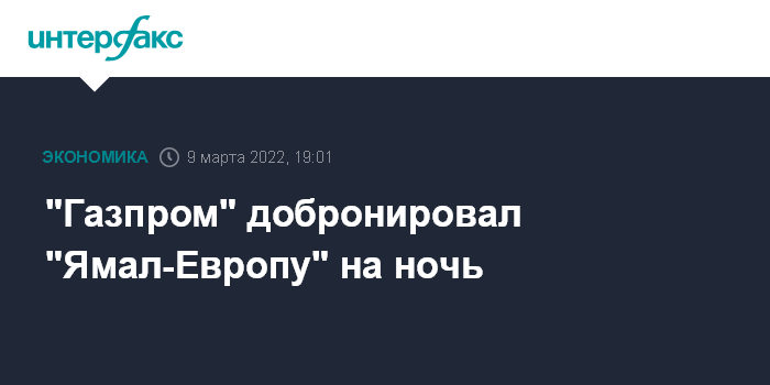 "Газпром" добронировал "Ямал-Европу" на ночь