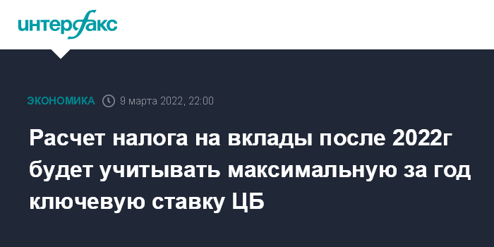 Расчет налога на вклады после 2022г будет учитывать максимальную за год ключевую ставку ЦБ