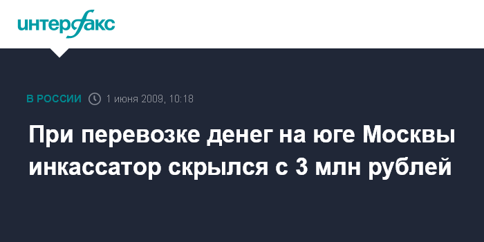 Москва. 1 июня. INTERFAX.RU – На юге столицы один из сотрудников ЧОПа скрылся с 3 млн рублей, который перевозил, сообщил "Интерфаксу" источник в правоохранительных органах города в понедельник.