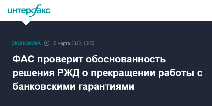 ФАС проверит обоснованность решения РЖД о прекращении работы с банковскими гарантиями