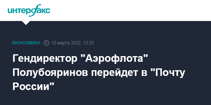 Информацию об уходе из "Аэрофлота" Полубояринова подтвердил источник "Интерфакса" в авиаотрасли. В "Почте России" не предоставили комментариев.