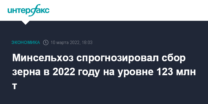 Минсельхоз спрогнозировал сбор зерна в 2022 году на уровне 123 млн т