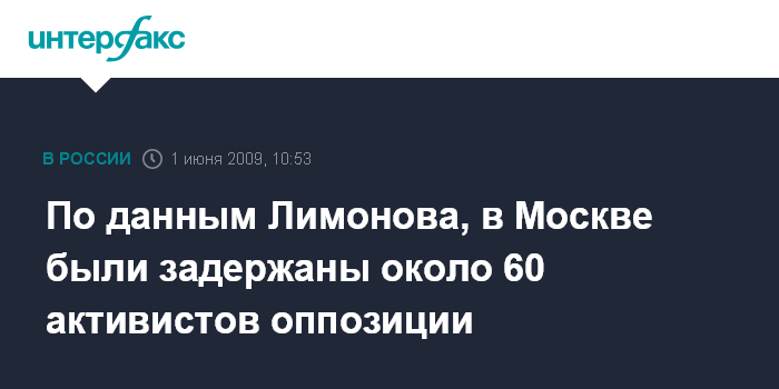 По данным Лимонова, в Москве были задержаны около 60 активистов оппозиции