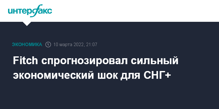 Москва. 10 марта. INTERFAX.RU - Военная операция на Украине и западные санкции против России являются серьезным потрясением для СНГ+ (Армения, Азербайджан, Белоруссия, Грузия, Казахстан, Россия, Украина и Узбекистан), говорится в обзоре международного рейтингового агентства Fitch Ratings.