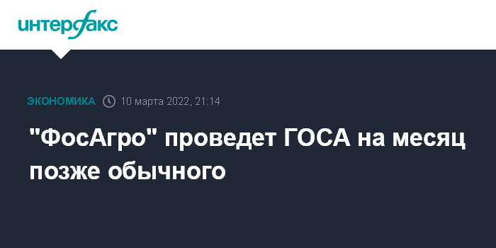 Обычно "ФосАгро" проводит годовое собрание акционеров на месяц раньше - в последних числах мая.