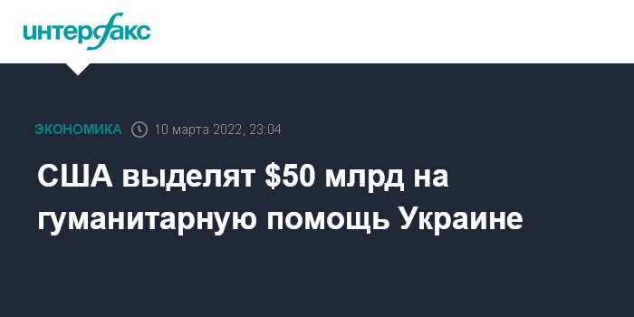 Москва. 10 марта. INTERFAX.RU - США выделят $50 млрд на гуманитарную помощь Украине через всемирную продовольственную программу ООН, сообщила вице-президент США Камала Харрис.