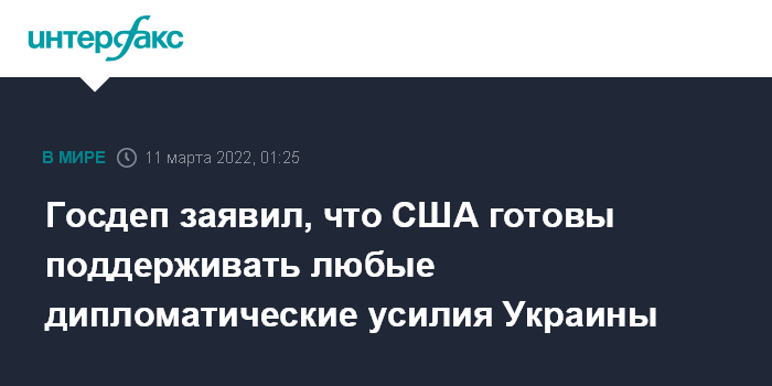 Госдеп заявил, что США готовы поддерживать любые дипломатические усилия Украины