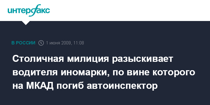 Москва. 1 июня. INTERFAX.RU – В пресс-службе Управления ГИБДД Москвы подтвердили информацию о том, что в понедельник на 9-м километре МКАД произошло дорожно-транспортное происшествие, в результате которого погиб автоинспектор.