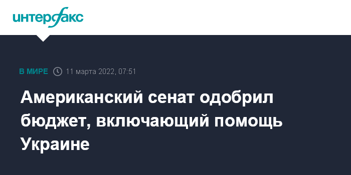 Москва. 11 марта. INTERFAX.RU - Сенат Конгресса США одобрил законопроект о финансировании федерального правительства на 2022 финансовый год, включающий военную и гуманитарную помощь Украине, а также выделение денежных средств на продолжающуюся борьбу с пандемией коронавируса.