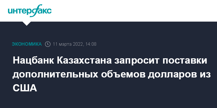 Москва. 11 марта. INTERFAX.RU - Национальный банк Казахстана сообщил, что прорабатывает вопрос поставок дополнительного объема наличной иностранной валюты из Федеральной Резервной системы США.