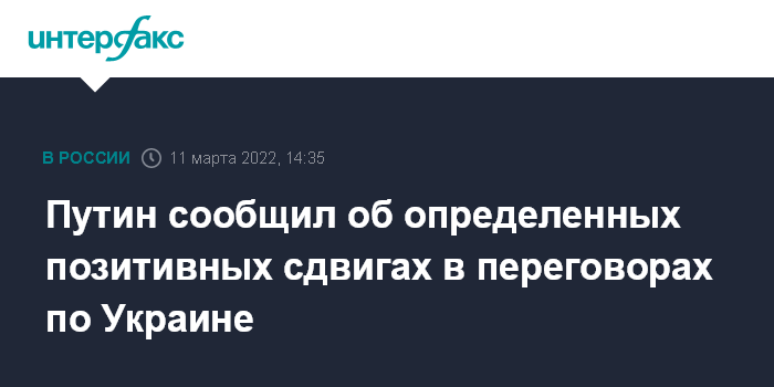 Москва. 11 марта. INTERFAX.RU - Определенные позитивные сдвиги в переговорах с Украиной есть, заявил президент РФ Владимир Путин.