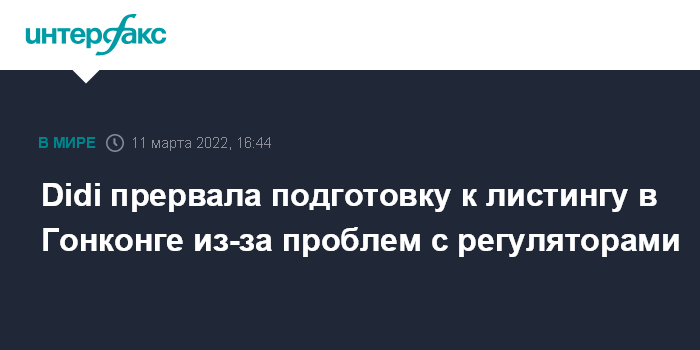Москва. 11 марта. INTERFAX.RU - Didi Global Inc., оператор крупнейшего в Китае сервиса онлайн-заказа такси, приостановил подготовку к листингу в Гонконге из-за проблем с интернет-регуляторами КНР, сообщили осведомленные источники Bloomberg.