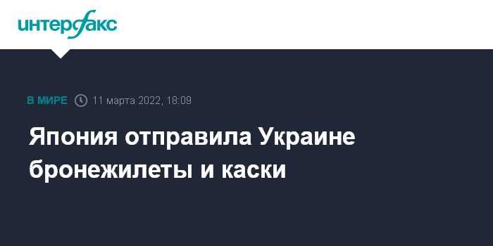 Москва. 11 марта. INTERFAX.RU - Япония отправила на Украину помощь, которая включает бронежилеты и каски, сообщает японское министерство обороны.