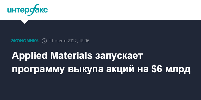 Москва. 11 марта. INTERFAX.RU - Американская Applied Materials Inc., один из крупнейших мировых производителей оборудования для выпуска чипов, сообщила, что запускает новую программу обратного выкупа акций объемом $6 млрд.