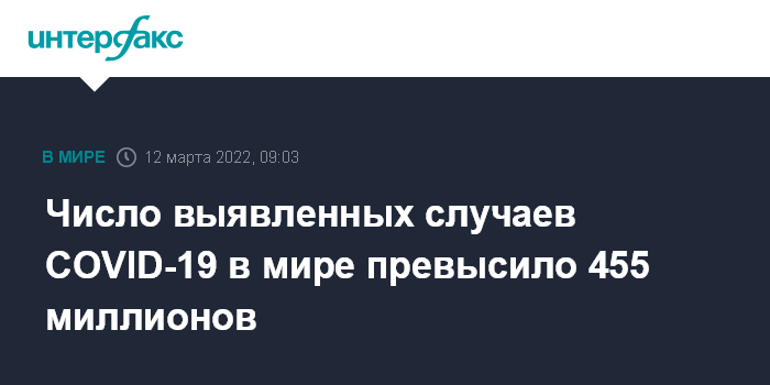 Число выявленных случаев COVID-19 в мире превысило 455 миллионов