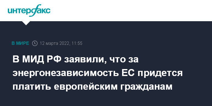 В МИД РФ заявили, что за энергонезависимость ЕС придется платить европейским гражданам