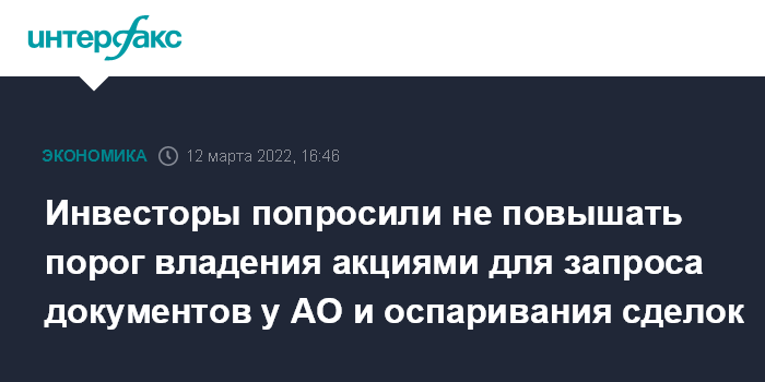 Инвесторы попросили не повышать порог владения акциями для запроса документов у АО и оспаривания сделок