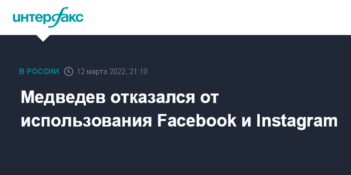 Москва. 12 марта. INTERFAX.RU - Зампредседателя Совета безопасности РФ Дмитрий Медведев отказался от использования социальных сетей Facebook и Instagram, сообщил его помощник Олег Осипов.