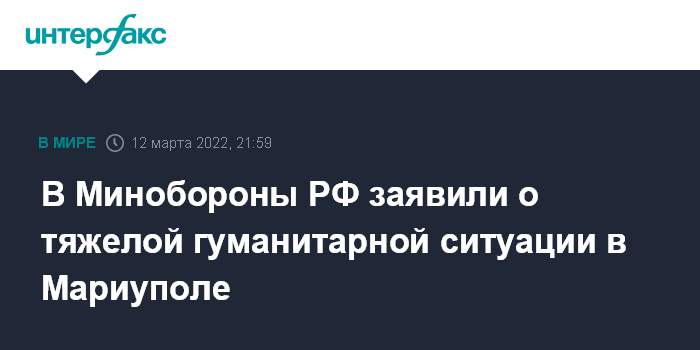 В Минобороны РФ заявили о тяжелой гуманитарной ситуации в Мариуполе