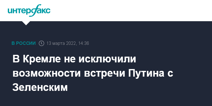 Москва. 13 марта. INTERFAX.RU - В Кремле заявили, что никогда не отрицали возможности встречи президента РФ Владимира Путина с президентом Украины Владимиром Зеленским, но предварительно хотели бы понять, что войдет в ее повестку и какой результат ожидается.