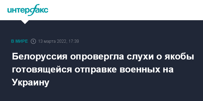 Москва. 13 марта. INTERFAX.RU - Минобороны Белоруссии опровергло информацию о "бунтах" в рядах Вооруженных сил страны в связи с якобы готовящейся отправкой белорусских войск на Украину.
