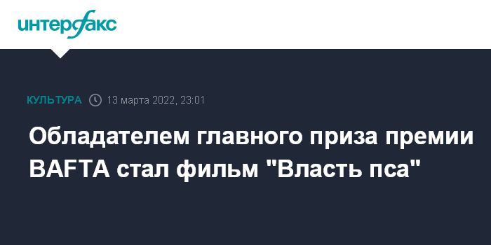 Москва. 13 марта. INTERFAX.RU - Фильм "Власть пса" режиссера Джейн Кэмпион стал обладателем главной награды премии Британской академии кино и телевизионных искусств BAFTA.