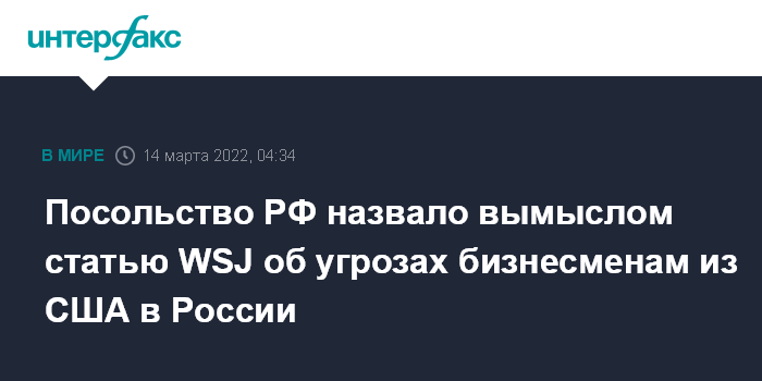 Посольство РФ назвало вымыслом статью WSJ об угрозах бизнесменам из США в России