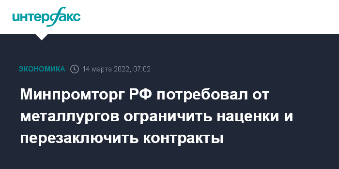 Минпромторг РФ потребовал от металлургов ограничить наценки и перезаключить контракты