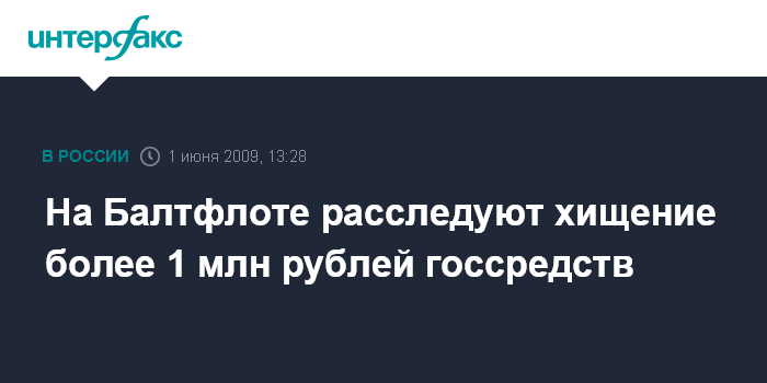 Калининград. 1 июня. INTERFAX.RU - На Балтийском флоте (БФ) выявлена и разоблачена группа лиц, похитившая более 1 млн. рублей государственных средств, сообщил "Интерфаксу" источник в штабе БФ.