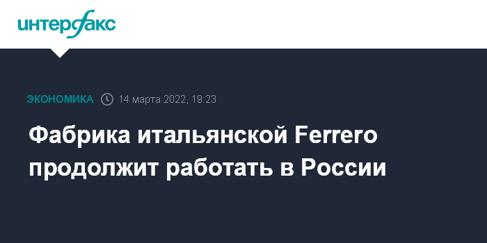 "Мы решили временно приостановить второстепенные виды деятельности и планы развития в России, как и большинство других продовольственных компаний", - заявила на прошлой неделе Ferrero в связи с событиями на Украине.