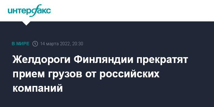 Москва. 14 марта. INTERFAX.RU - VR Group (железные дороги Финляндии) прекращают прием грузов от российских лизинговых компаний и грузоотправителей.
