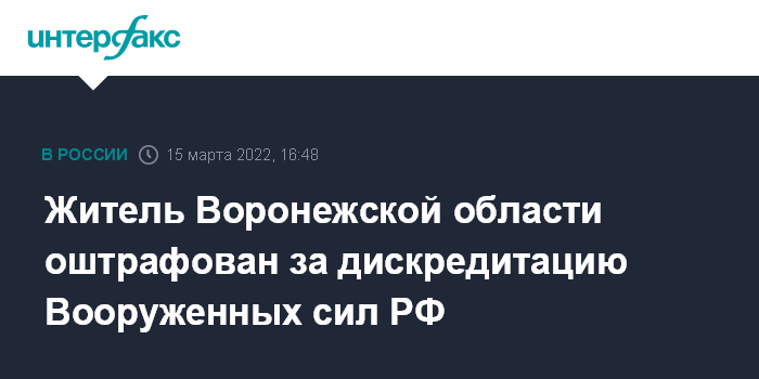 Житель Воронежской области оштрафован за дискредитацию Вооруженных сил РФ