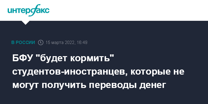 БФУ "будет кормить" студентов-иностранцев, которые не могут получить переводы денег