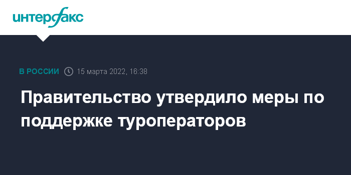 Москва. 15 марта. INTERFAX.RU - Правительство своим постановлением утвердило пакет мер по поддержке туроператоров в 2022 году, в том числе введение единого минимального размера финансовых гарантий для компаний с любым оборотом. Постановление № 353 от 12 марта опубликовано на официальном портале правовой информации.