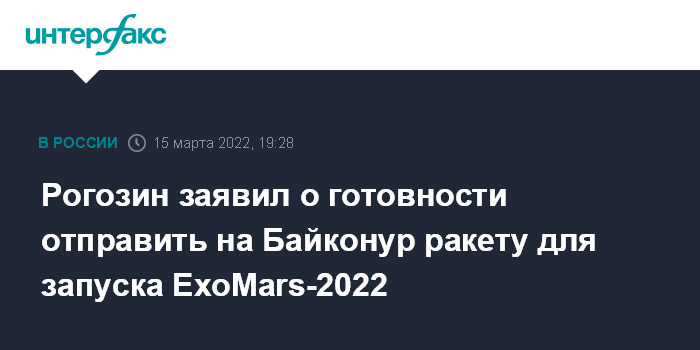 10 марта Рогозин заявлял, что запуск российско-европейского космического аппарата ExoMars-2022 в этом году, скорее всего, не состоится из-за деструктивной позиции ESA. 28 февраля в ESA сообщили, что запуск российско-европейского аппарата ExoMars в 2022 году маловероятен из-за санкций в отношении России.