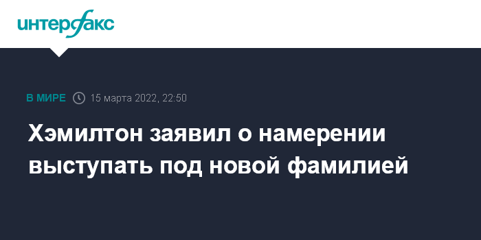 Хэмилтон заявил о намерении выступать под новой фамилией