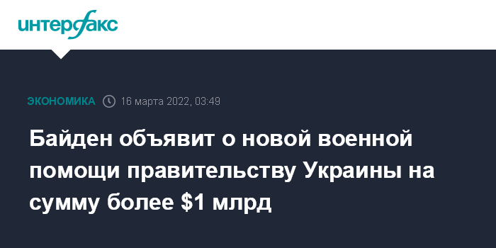 Отмечается, что Байден объявит о новой военной помощи правительству Украины на сумму более $1 млрд.