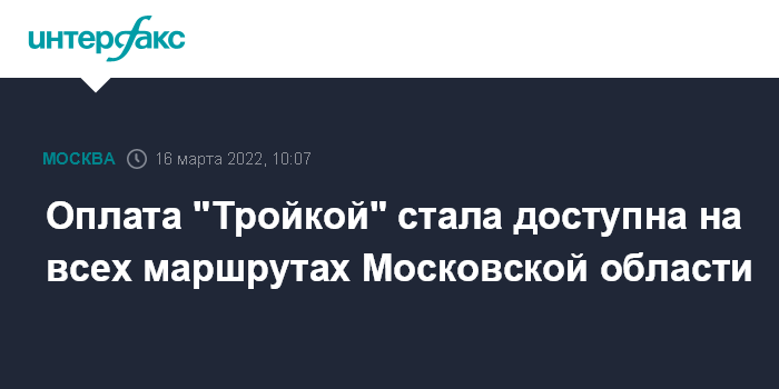 Москва. 16 марта. INTERFAX.RU - На всех маршрутах общественного транспорта Подмосковья теперь принимают карту "Тройка".