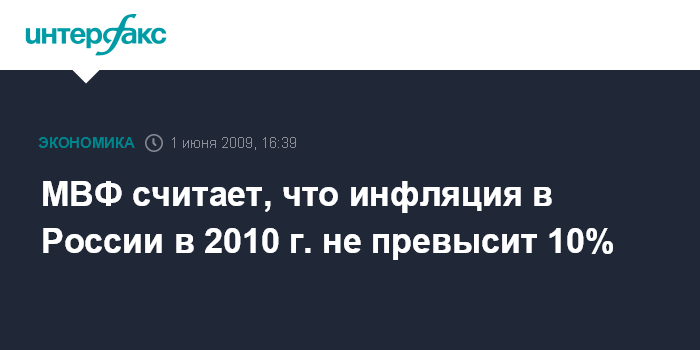 МВФ считает, что инфляция в России в 2010 г. не превысит 10%