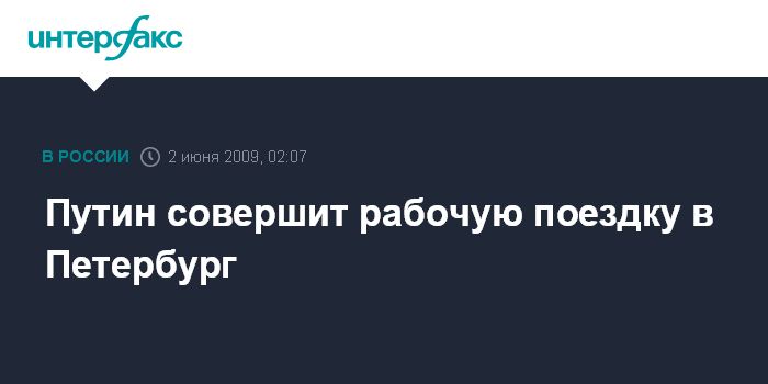Москва. 2 июня. ИНТЕРФАКС - Премьер-министр России Владимир Путин 2 июня посетит с рабочей поездкой Санкт-Петербург, сообщили "Интерфаксу" в пресс-службе правительства РФ.