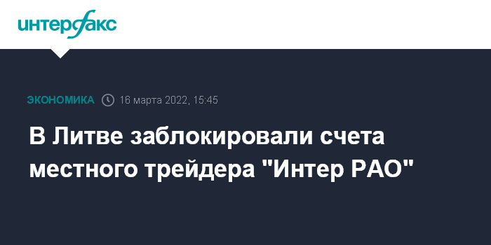 В Литве заблокировали счета местного трейдера "Интер РАО"